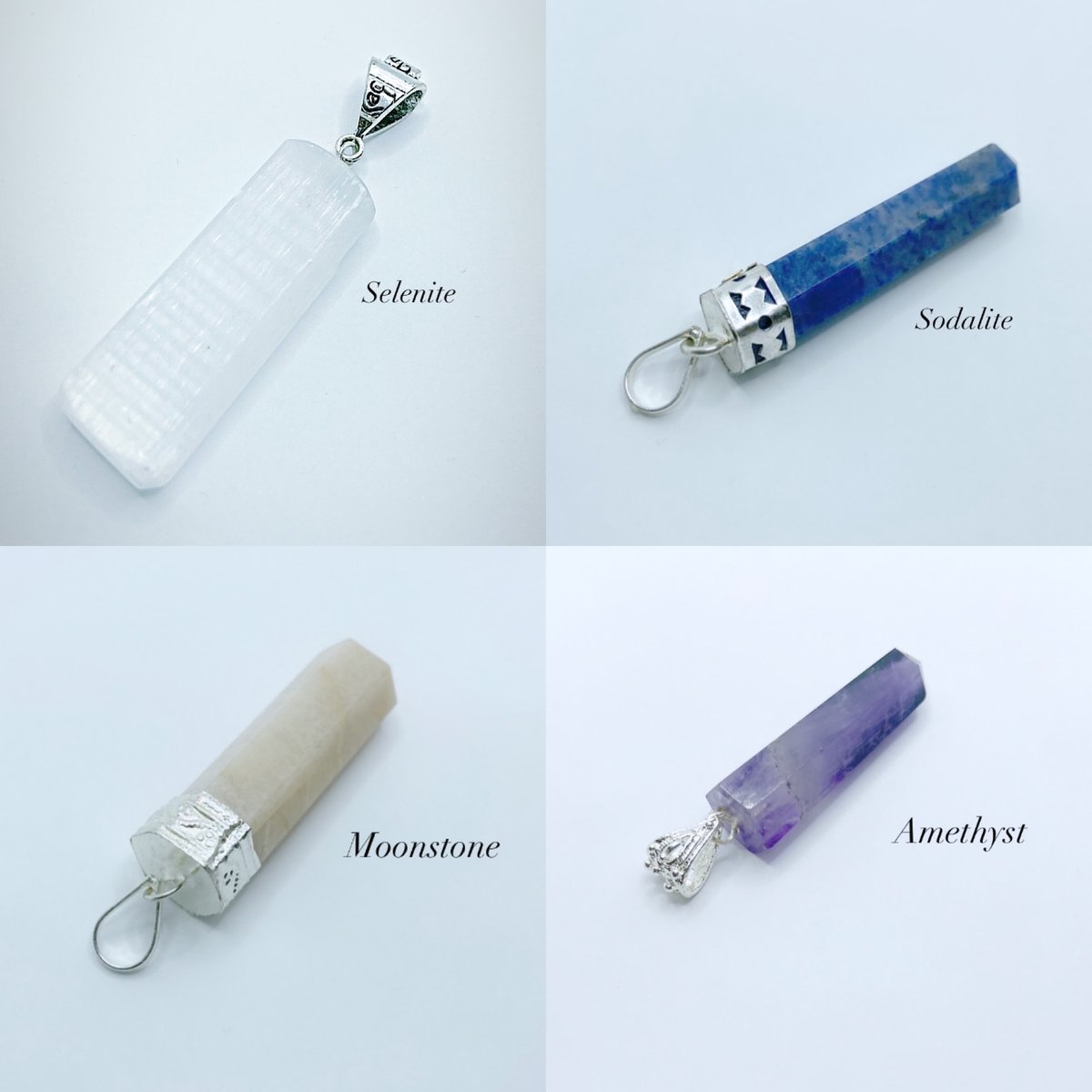 Selenite - is a cleansing and charging crystal it cleanses the negative energy of the wearer also other crystals and can be used to recharge them.